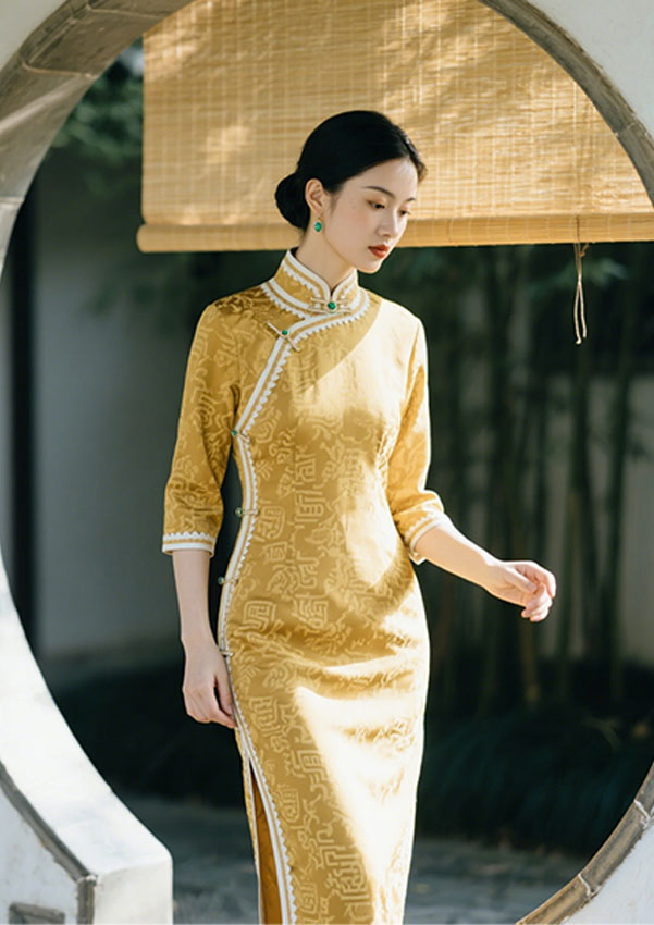 立裁并非简单西化,而是对传统美学的现代化转译。如借鉴宋锦藻井纹样的对称美学,通过弧度剪切使花纹在立体剪裁中保持完整;或改良立领结构,采用0.5cm级差调节领高,既保留端庄仪态,又避免传统高领的束缚感 。这种工艺革新使旗袍从礼仪符号转变为日常美学载体,适应现代生活场景 。